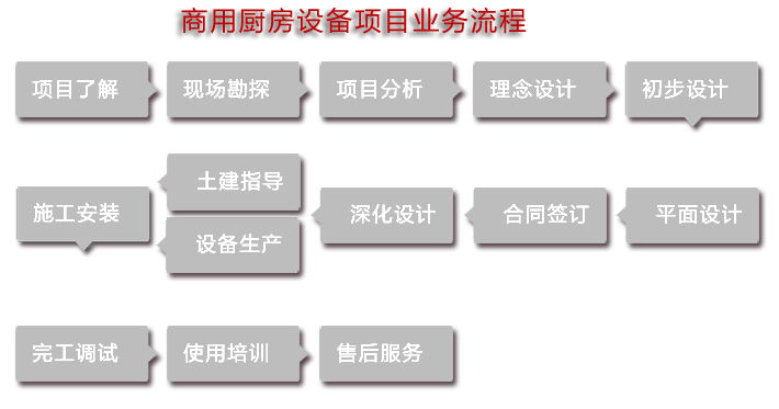 - 客戶完成施工現(xiàn)場(chǎng)建設(shè)后設(shè)備進(jìn)場(chǎng),按照廚房設(shè)計(jì)方案進(jìn)行安裝,確保項(xiàng)目施工按設(shè)計(jì)方案進(jìn)行。